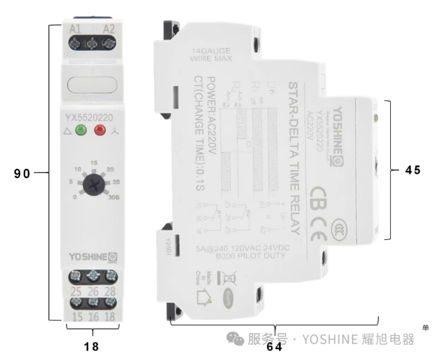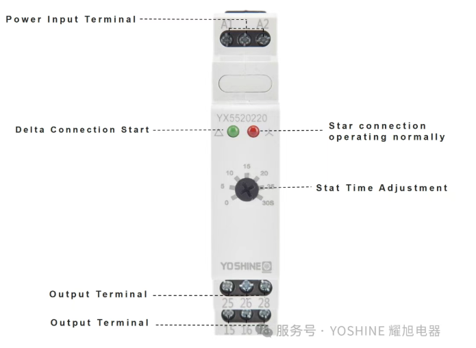 Реле времени звезда-треугольник YX5520 имеет конструкцию ручки и оснащено многоцветными светодиодными индикаторами, обеспечивающими обратную связь в режиме реального времени о рабочем состоянии.